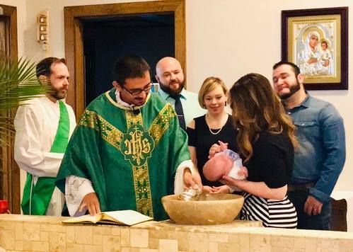 Baptism is the beginning of the life of God's grace in our soul. Jesus tells us that we must be born again by water and the Holy Spirit to the enter the Kingdom. Children of Catholic families should be baptized as soon as possible after birth. Once someone is 7 years old (and up), they will need to go through the Rite of Christian Initiation at Easter. To schedule a baptism, please send us an email by clicking on the link below!